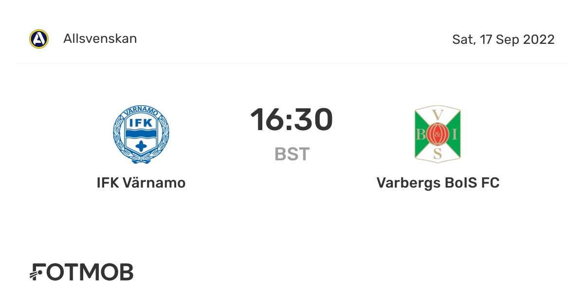 Ifk Varnamo Vs Varbergs Bois Fc Allsvenskan On Sat Sep 17 2022 15 30 Utc